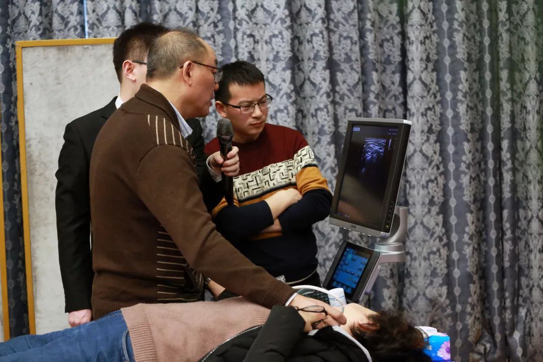 课上,朱强教授现场演示了颈部超声分区检查,让学员们现场回答打图所在的区域。经过一定培训、学习,学员们对头颈部淋巴结的超声诊断有了新的认识。