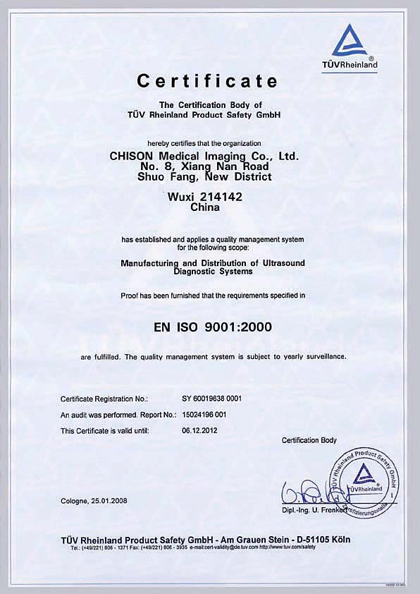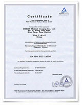 德国TUV公司颁发的ISO9001:2000证书
